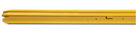 The unique notch system is designed to hold barrier mesh, safety tape and flags firmly without ties. Mesh simply hooks up over the top, upward facing lugs; it is then further secured by pulling down to hook snugly onto the bottom, downward facing lugs.